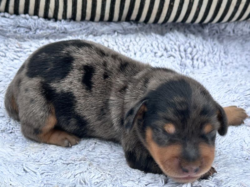 Our Miniature Dachshunds are raised in our home with hands-on care, early socialization, and lots of love. Known for their affectionate personalities and playful spirit, Dachshunds make loyal companions for individuals and families alike.